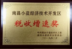 2019年2月,江西制藥喜獲中共南昌小藍經開區工委、南昌小藍經開區管委會授予的稅收增速獎